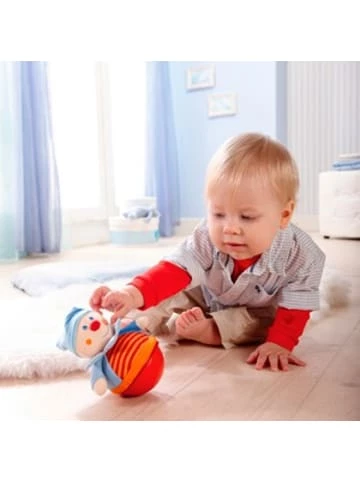 Die Stehauffigur Kasper von HABA gefällt auf den ersten Blick. Er eignet sich zum Spielen, Kuscheln und Liebhaben. ab 6 Monaten geeignet 10,7(L) x 10,9(B) x 16,7(H) cm wackelt, rollt, klingelt weicher Stoff Der Stoffkasper sorgt für gute Laune im Kinderzimmer. Das kleine Wackelmännchen fordert die Bewegungskoordination kleiner Kinder heraus. Wenn das Baby nach dem Kasper greift, klingelt er und rollt davon. Das Baby verbessert durch wiederholte Greifversuche seine Grob- und Feinmotorik. Robben, Greifen und Festhalten: eine große Herausforderung für kleine Kinder. Das Stehaufmännchen kombiniert die Spielideen von Ball und Rassel noch mit der sozialen Komponente des Gesichtes. Die Klingel ist extra leise, um die kleinen Ohren zu schützen.Länge: 0,1 cmBreite: 0,1 cmHöhe: 0,1 cmAlter geeignet ab: Geburt,Alter geeignet bis: 99 Jahren,Geschlecht: Unisex