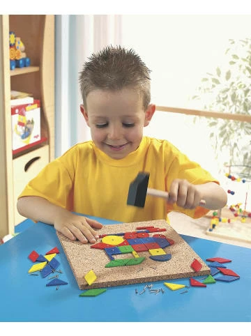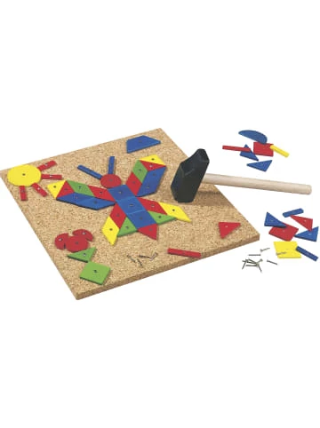 Schöne, farbenfrohe Figuren können Kinder mit diesem Nagelspiel „Poch Poch“ von HABA erschaffen. Dafür einfach die bunten Holztäfelchen auf der Korkplatte platzieren und mithilfe des Holzhammers und der Nägel fixieren– fertig!Details:– Nagelspiel mit Holztäfelchen– mit bunten Vorlagen– regt die Fantasie anLieferumfang– 50 x Geometrische Teile– 1 x Korkplatte– 1 x Hammer– NägelMaße: ca. 32 x 20 x 4 cmMaterial: HolzAltersempfehlung:ab 3 Jahr(e) bis 5 Jahr(e)