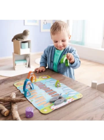 Meine ersten Spiele – Auf, auf, kleiner Pinguin von HABADie Pinguin-Mamas wollen mit ihren Babys von ihrer Insel auf das , denn dort warten leckere Fische. Zum Glück ragen genügend Steine, Baumstämme und Planken aus dem Wasser, so dass die Pinguin-Babys mit ihren Mamas darüber hopsen können. Welches Pinguin-Paar schafft es am schnellsten auf die andere Seite und darf sich über die zwei leckeren Fische freuen?Ein putziges Würfel-Laufspiel mit großen Holzteilen für kleine Hände.Altersempfehlung:ab 2 Jahr(e) bis 4 Jahr(e)ACHTUNG: Benutzung unter unmittelbarer Aufsicht von Erwachsenen