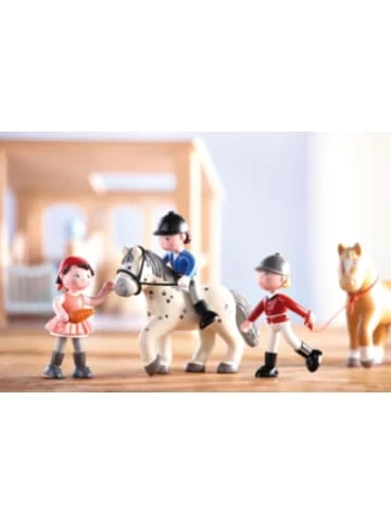 Die Little Friends von HABA haben viel Spaß auf dem Pferdehof!Die Sonne scheint und die Pferde benötigen Auslauf. Pferd Pippa freut sich und ist schon ganz unruhig. Denn gleich geht es los – zunächst muss aber der Sattel festgezurrt werden.Auf einen Blick:– Größe: 10,5 cm– Beine nicht biegbar– Material: KunststoffAltersempfehlung:ab 3 Jahr(e) bis 6 Jahr(e)