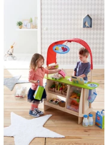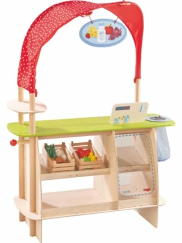 Guten Tag! Was darf´s denn sein? Etwas Süßes oder lieber etwas Herzhaftes? Und wie wäre es mit frischem Obst und knackigem Gemüse? Der HABA-Kaufladen Einkaufsglück mit integrierter Frischetheke hat für seine kleinen Kunden all das zu bieten, denn die Auslagen können ganz nach Lust und Laune mit unterschiedlichsten Kaufladen-Artikeln bestückt werden. +++Details++++ Inkl. eine Holz-Scannerkasse zum Einstecken, ein Papiertütenhalter, zwei Holzstiegen (mit 22 Teilen)+ Inkl. ein herausnehmbares Recycling-Netz für Pfandflaschen+ Inkl. ein Kassenfach aus Stoff zum Ankletten mit Notizblock und Stift.Altersempfehlung:ab 3 Jahr(e) bis 5 Jahr(e)ACHTUNG: Nicht für Kinder unter 36 Monaten geeignet.