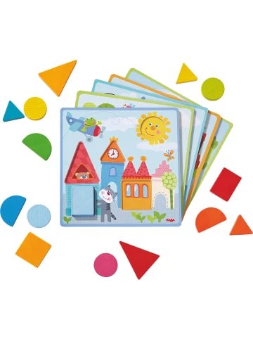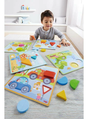 trainiert das Erkennen und Zuordnen von Farben und Formenfördert die FeinmotorikDie Sonne ist rund, ein Dach dreieckig und wie sieht ein Haus aus? Mit dem Zuordnungsspiel Tierische Abenteuer lernen Kinder spielerisch unterschiedliche Formen und Farben kennen. Das Puzzeln in die passenden Aussparungen auf den Legetafeln macht Spaß und schult die Feinmotorik.Inhalt:5 Legetafeln, 15 Plättchen.Alter von:1,5 JahreGewicht Produkt:0,67 kgHöhe:23 cmBreite:23 cmLänge:23 cmAnzahl Teile:19 StückMaterial:Pappe, HolzWeitere Hinweise• Diese Spielzeuge sind gut für die Entwicklung• Haba sind eine hochwertige Marke• Eine nachhaltiges ProduktAltersempfehlung:ab 18 Monat(e) bis 36 Monat(e)