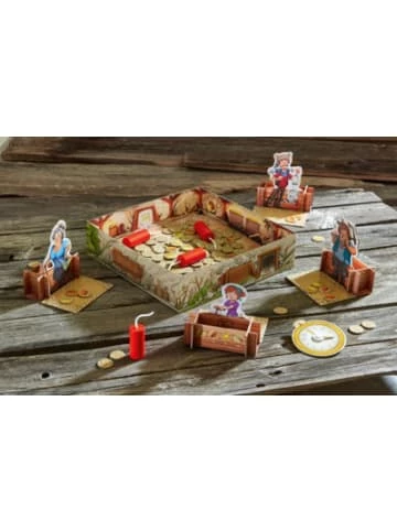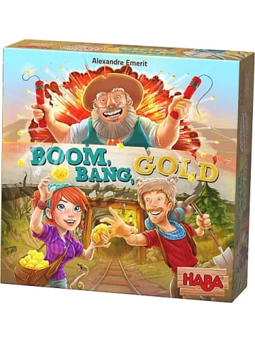 Boom, Bang, Gold von HABA In dem verschlafenen Örtchen Old Town hat man Gold gefunden. Seitdem ist hier die Hölle los! Vom Goldrausch gepackt, schnappt sich jeder eine Stange Dynamit und wirft sie in die Goldmine. Jetzt sind ein gutes Auge und Schnelligkeit gefragt … nur so geht man am Ende nicht leer aus! Eine rasante Goldsuche mit innovativem Spielmaterial, das für einen aufregenden Explosionseffekt sorgt.Altersempfehlung:ab 7 Jahr(e) bis 19 Jahr(e)