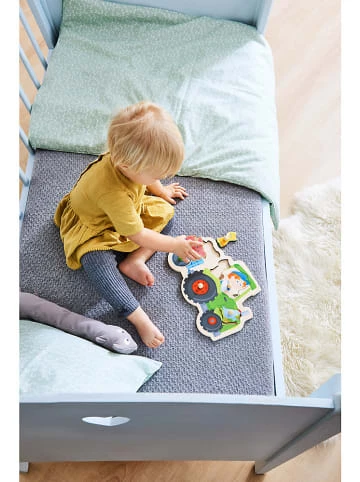 Was fehlt denn noch? Das fragt sich Bauer Ben bei dem HABA Greifpuzzle Lustige Traktorfahrt. Wer hilft ihm, die Räder an die richtige Stelle und das Schweinchen in den Anhänger zu setzen? Das Holzpuzzle nimmt Kinder ab 1 Jahr mit in die spannende Welt des Puzzelns. Dank der großen Griffe können kleine Hände die 6 Puzzleteile aus Holz bequem greifen und in die richtige Aussparung setzen. So trainieren junge Puzzler ihre Feinmotorik. Beim Zuordnen der Baby-Puzzle-Teile lernen die Kleinen die niedlichen Tiere zu benennen. Katze und Huhn möchten auch mit! Und los geht die lustige Traktorfahrt! 295cm x 197cm x 23cmAltersempfehlung:ab 12 Monat(e) bis 24 Monat(e)