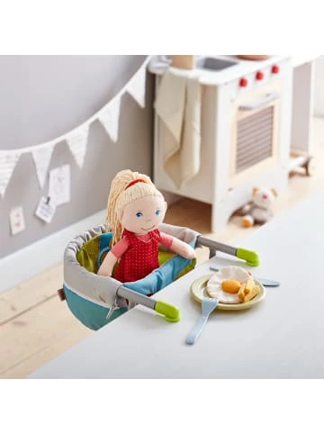 Der Tischsitz Sommerwiese von HABA ist der ideale Sitzplatz für die kleinen Spielkameraden. An jede Tischplatte lässt sich dieser mobile Puppen-Sitz klemmen, drinnen und draußen, zu Hause und unterwegs. Hier nehmen Kuscheltier und Puppe gerne Platz und leisten Kindern viel Gesellschaft. Das Puppenmöbel ist natürlich auch zum Spielen geeignet. Kreative Rollenspiele denken sich Kinder aus mit Puppenzubehör, das ihrem eigenen Alltag ähnelt. So verarbeiten sie Erlebnisse und entwickeln soziale Fähigkeiten.Details:– Sitz für Puppen und Kuschletiere– kann an einer Tischplatte geklemmt werdenMaße: 45 x 30 x 7 cmMaterial: Metall, Polyester, KunststoffAltersempfehlung:ab 18 Monat(e) bis 4 Jahr(e)