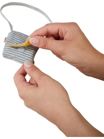 Ist deine Puppe bereit für einen Ausflug? Na klar, mit dem HABA Kleiderset Accessoires! Die blauen Puppen-Stiefel halten schön warm. Sie lassen sich auch über angenähte Puppenschuhe ziehen und mit Klettverschluss schließen. Der leuchtend gelbe Schal schützt vor Kälte und sorgt für bessere Sichtbarkeit auf der Straße. In der schicken Umhängetasche finden Kleinigkeiten Platz. Mit dem dreiteiligen Puppenkleider-Set kann die Puppe Kinder ab 1,5 Jahren überallhin begleiten. Cleveres Spielzeug aus Stoff für lebensnahe Rollenspiele von HABA!Details:– dreiteiliges Set für Puppen– Stiefelchen mit Klettverschluss– wärmender Schal– praktische UmhängetascheMaterial: TextilHinweis: Die abgebildete Puppe ist nicht enthalten.Altersempfehlung:ab 18 Monat(e) bis 6 Jahr(e)