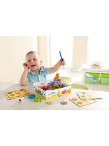 Das kindgerechte Angelspiel von HABA trainiert spielerisch die Hand-Augen-Koordination und vermittelt kleinen Kindern ein erstes Verständnis von Regeln. Auf dem Meeresboden tummeln sich verschiedene Meerestiere in bunten Farben. Der Würfel gibt vor, welche lustige Figur herauszufischen ist. Sowohl der “Wurm” als auch die Tiere sind mit Magneten versehen, die auch ungeübten Kinderhänden einen dicken Fang garantieren.Details:– ab 2 Jahren– Fertigung aus Holz– magnetische Spielteile– trainiert spielerisch die Hand-Augen-Koordination und die Konzentrationsfähigkeit– vermittelt ein Verständnis für RegelnLieferumfang:– Angel mit magnetischem “Wurm”– sechs bunte MeerestiereAltersempfehlung:ab 2 Jahr(e) bis 4 Jahr(e)ACHTUNG: Benutzung unter unmittelbarer Aufsicht von Erwachsenen