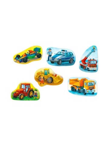 Das Puzzle von HABA aus der Reihe 6 erste Puzzles stellt Fahrzeuge vom Rennwagen bis zum Traktor vor. ab 2 Jahren 6 Einzel-Puzzles mit insgesamt 18 Puzzle-Teilen 1 Holzfigur Papp-Puzzle Durch die großen Teile aus stabiler Pappe sind die sechs verschiedenen Fahrzeuge bald zusammengelegt. Spielerisch schult der Nachwuchs mit den Puzzles seine Feinmotorik und seine Auge-Hand-Koordination. Nicht zuletzt werden auch Aufmerksamkeit und genaues Hinschauen gefördert. Bunte, kontraststarke Bilder zeigen nicht nur die einzelnen Details, sondern auch die jeweiligen Fahrer. Enthalten ist außerdem eine hochwertige Holzfigur für kreatives Spielen.Länge: 0,1 cmBreite: 0,1 cmHöhe: 0,1 cmGeschlecht: Unisex