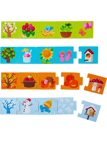 – Das Zuordnungsspiel Jahreszeiten enthaelt liebevoll gestaltete Holzplaettchen in bewaehrter HABA-Qualitaet– Fuer spielerisches Kennenlernen der Jahreszeiten und ihrer Besonderheiten– Foerdert die Feinmotorik und das Erkennen und Benennen von Tieren, Gegenstaenden und Farben20 Holz-PuzzleteileFruehling, Sommer, Herbst oder Winter?Mit dem Zuordnungsspiel Jahreszeiten von HABA lernen Kinder ab 2 Jahren spielerisch die Besonderheiten der vier Jahreszeiten kennen und koennen zeigen, was sie schon ueber den Kreislauf der Natur wissen. Jeweils 5 liebevoll gestaltete Holzplaettchen zeigen richtig zusammengelegt, was es in den jeweiligen Jahreszeiten alles zu sehen und zu entdecken gibt. Welche Pflanzen wachsen, welche Tiere sehen wir und wie ziehen wir uns richtig an? All das koennen die Kinder beim Zuordnen lernen und schulen ganz nebenbei ihre Feinmotorik und das Erkennen und Benennen von Farben. Und wer mag, kann die Puzzleteile auch nach Lust und Laune kunterbunt durcheinanderkombinieren.Achtung: Nicht für Kinder unter 3 Jahre geeignet. Erstickungsgefahr durch verschluckbare Kleinteile.