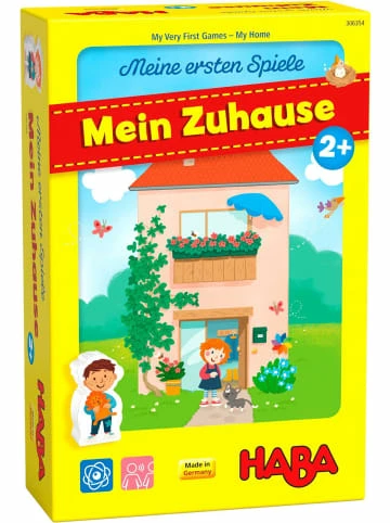 Zwei heimelige Zuordnungsspiele: Meine ersten Spiele Mein Zuhause von HABA– mit 40 liebevoll gestalteten Motiven aus dem Kinderalltag– regt zum Erzaehlen an und foerdert die Sprachentwicklung– mit huebscher, doppelseitig bedruckter HolzfigurInhalt: 2 Spielplaene (beidseitig bedruckt): Zimmer/Haus, 1 Spielfigur (beidseitig bedruckt) Junge/Maedchen, 32 Gegenstandskarten, 8 Kategoriekarten (= 4 Paare: klein/gross leicht/schwer drinnen/draussen Tag/Nacht), 1 Spielanleitung.Material: Pappe, BucheMit der Spielesammlung Mein Zuhause aus der HABA Reihe Meine ersten Spiele ueben Kinder das Benennen und Zuordnen von alltaeglichen Gegenstaenden. Wo gehoert der Teddy hin? 32 Gegenstaende sind vier Raeumen zuzuordnen: Das liebevoll gestaltete Spielmaterial besteht aus stabiler Pappe. Die Holzfigur ist als Maedchen und als Junge gestaltet. Sie begleitet die Kinder beim Erkunden des Hauses und laedt zum freien Spielen ein. Meine ersten Spiele von HABA vermitteln Kindern ab 2 Jahren altersgerecht das Spielen nach Regeln. Die Reihe enthaelt Lernspiele fuer Wissen, Spiel-Spass und den r Einstieg in die spannende Welt der Regelspiele.Achtung! Nicht für Kinder unter 36 Monaten geeignet. Enthält verschluckbare Kleinteile. Benutzung unter unmittelbarer Aufsicht von Erwachsenen.