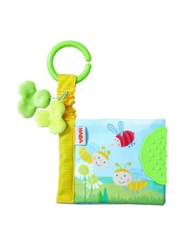Mit dem tierisch süßen Buggybuch von Haba lernen die Kleinen ab sechs Monaten erste Wiesentiere kennen. Buggybuch Wiesentiere von Haba 8 Seiten mit Quietsche und Knisterfolie, ein Beißelement hilft beim Zahnen zum Aufhängen an Buggy, Babyschale und Bettchen ab 6 Monaten geeignet Das Stoffbuch für Babys ab 6 Monaten begeistert mit farbenfrohen Tierbildern, Quietsche und Knisterfolie. Kleine Kinderhände können die Seiten gut greifen und umblättern. Dabei trainieren Babys ihre Handmotorik. Die akustischen Effekte und die liebevollen Illustrationen regen die Wahrnehmung kleiner Weltentdecker an. Babys erkunden die Welt auch mit dem Mund, daher hat das Buggybuch ein Beißelement. Das massiert prima das Zahnfleisch und hilft beim Zahnen. Mit dem robusten Kunststoffring lässt sich das weiche Babybuch befestigen am Spieltrapez, Bettchen und Kinderwagen. Tierisch viel Spaß zuhause und unterwegs mit Haba.Länge: 0,1 cmBreite: 0,1 cmHöhe: 0,1 cmPflegehinweise:* Bleichen: Nicht bleichen* Professionelle Textilpflege: Nicht trockenreinigen* Waschen: Schonwaschgang 30°* Bügeln: Nicht bügeln* Trocknen: Nicht im Tumbler trocknenGeschlecht: Unisex