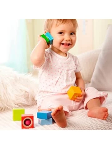 Die Holz Entdeckersteine Klangspaß von HABA bieten vielseitigen Bau- und Spielspaß. Die kleinen Entdecker können mit diesen kunterbunten Bausteinen tolle Geräusche erzeugen. 6 bunte Entdeckersteine 13,6(L) x 19,2(B) x 5,5(H) cm Buchenholz ab 12 Monate Da macht das Bauen und Ausprobieren Spaß! Mit jedem der lustig bunten Holzwürfel erzeugen die kleinen Entdecker ein anderes Geräusch. Klappernde, klingelnde, ratternde oder quietschende Töne erklingen durch die Beschäftigung mit den Würfeln. Natürlich kann mit ihnen auch ein bunter Turm gebaut werden. Doch kippt er um, erklingen wieder die lustigen Töne. Während die akustischen Klänge der einzelnen Steine entdeckt werden, wird gleichzeitig die Wahrnehmung gefördert.Länge: 0,1 cmBreite: 0,1 cmHöhe: 0,1 cmGeschlecht: Unisex