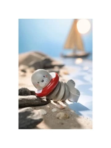 Der Greifling von Haba fasziniert mit klappernden Ringen schon die Kleinsten ab sechs Monaten. Greifling Klapperfigur Robbe von Haba ca. 10,5 cm groß aus Holz ab 6 Monaten Der Holz-Greifling im Robben-Design mit Schwimmring ist mit Holzteilen ausgestattet, die mittels Gummiband zusammengehalten werden. Wird die kleine Robbe geschüttelt, klappern die Ringe lustig aneinander. Das weckt die Neugier der Kleinen und regt zum Greifen, Tasten, Fühlen und Hören an – das trainiert spielerisch die Feinmotorik und das Gehör.Länge: 0,1 cmBreite: 0,1 cmHöhe: 0,1 cmGeschlecht: Unisex