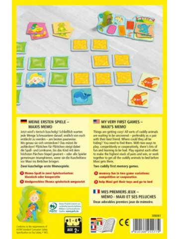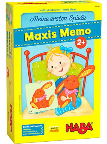 Wo verstecken sich all die süßen Kuscheltiere? Mit Meine ersten Spiele – Maxis Memo machen sich Kinder ab 2 Jahren auf die Suche. Zwei von jeder Sorte verbergen sich in klassischer Memo-Art unter den Plättchen. Beim Spiel im Team treten die Kinder gemeinsam gegen Maxi an. Das HABA Spiel ist eine spannende Übung fürs Gedächtnis und ein toller Einstieg in die Welt der Regel-Spiele. Die niedliche Holzfigur Maxi und das liebevoll gestaltete Spielmaterial laden auch zum freien Spielen und Erzählen ein. Das ist kuscheliger Memo-Spaß von HABA mit Maxi und ihren Stofftieren.Details:– ab 2 Jahren– für eine bis vier Personen– zwei tolle Memo-Spiele (klassisch oder kooperativ) für die Kleinsten– fördert die Sprachentwicklung und das Gedächtnis– übt erstes Regelverständnis– mit Kartenpaaren und einer süßen HolzfigurAltersempfehlung:ab 2 Jahr(e) bis 6 Jahr(e)