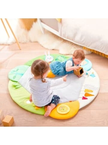 Spielen, schlummern, schmusen: Die Spieldecke von HABA punktet mit vielfältigen Einsatzmöglichkeiten und kann zum Kuschelnest umfunktioniert werden. Spieldecke von HABA mit Rasselring sowie Knister- und Spiegelfolie Seiten können hochgeklappt werden ab Geburt besonders bequem dank weicher Polsterung Mehrere zum Teil plastisch gestaltete Motive laden auf der Spieldecke zum Entdecken ein. Die niedlichen Gesichter von Hase, Bär und Sonne lächeln den Nachwuchs freundlich an. Stabile Applikationen bieten haptische Beschäftigungsanreize. Auf der gemütlichen Decke können die Minis nach dem Spiel entspannt einschlafen: Werden die Seiten der Krabbeldecke hochgeklappt, entsteht ein behagliches Nest, das Geborgenheit und Sicherheit vermittelt. Hier lässt sich ebenso gut träumen wie spielen.Länge: 0,1 cmBreite: 0,1 cmHöhe: 0,1 cmPflegehinweise:* Bleichen: Nicht bleichen* Professionelle Textilpflege: Nicht trockenreinigen* Waschen: Schonwaschgang 30°* Bügeln: Nicht bügeln* Trocknen: Nicht im Tumbler trocknenGeschlecht: Unisex