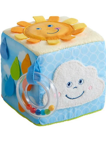Der bunte Spielwürfel von Haba bietet Kindern mit haptischen, akustischen und optischen Anreizen viel zu entdecken. Spielwürfel von Haba farbenfrohes Design mit verschiedenen Motiven Fühl-Elemente, rasselnder Greifring mit bunten Perlen, Knister- und Spiegelfolie, Zwitscher-Effekt aus Textil ab 6 Monaten geeignet Der Spielwürfel von Haba fördert Kinder in ihrer motorischen und sensorischen Entwicklung. Viele Ausstattungsmerkmale regen zum Fühlen und Entdecken an: Der weiche Würfel verfügt über diverse Motive, einen rasselnden Greifring mit bunten Perlen und verschiedenartige Oberflächen. Knister- und Spiegelfolie sowie ein Zwitscher-Effekt sorgen zudem für auditive Anreize. Kinder ab sechs Monaten werden von dem farbenfrohen Spielzeug aus Textil zum Tasten, Fühlen und Erleben animiert.Länge: 10 cmBreite: 10 cmHöhe: 10 cmGeschlecht: UnisexAltersempfehlung:ab 6 Monat(e) bis 18 Monat(e)ACHTUNG: Benutzung unter unmittelbarer Aufsicht von Erwachsenen