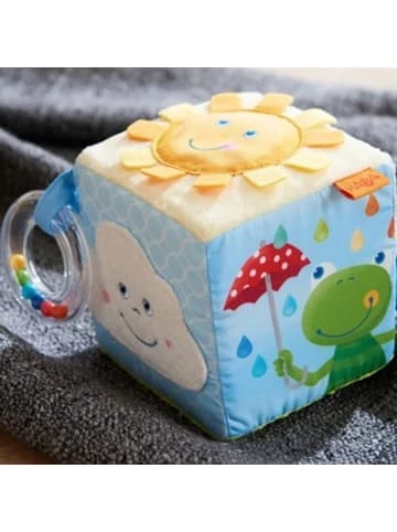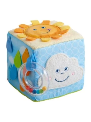 Der bunte Spielwürfel von Haba bietet Kindern mit haptischen, akustischen und optischen Anreizen viel zu entdecken. Spielwürfel von Haba farbenfrohes Design mit verschiedenen Motiven Fühl-Elemente, rasselnder Greifring mit bunten Perlen, Knister- und Spiegelfolie, Zwitscher-Effekt aus Textil ab 6 Monaten geeignet Der Spielwürfel von Haba fördert Kinder in ihrer motorischen und sensorischen Entwicklung. Viele Ausstattungsmerkmale regen zum Fühlen und Entdecken an: Der weiche Würfel verfügt über diverse Motive, einen rasselnden Greifring mit bunten Perlen und verschiedenartige Oberflächen. Knister- und Spiegelfolie sowie ein Zwitscher-Effekt sorgen zudem für auditive Anreize. Kinder ab sechs Monaten werden von dem farbenfrohen Spielzeug aus Textil zum Tasten, Fühlen und Erleben animiert.Länge: 0,1 cmBreite: 0,1 cmHöhe: 0,1 cmGeschlecht: Unisex