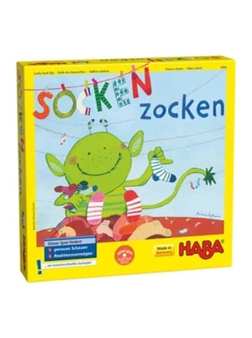 Im lustigen Suchspiel “Socken zocken!” von Haba müssen die Kids schnellstmöglich Sockenpaare ergattern. ab 4 Jahren 2-6 Spieler 1 Sockenmonster, 13 Wäscheklammern aus Holz, 48 Socken und 1 Spielanleitung Suchspiel Im Kleiderschrank herrscht wildes Durcheinander – das freche Sockenmonster hat kräftig gewühlt und ein riesiges Chaos hinterlassen. Alle Socken liegen kreuz und quer. Wer schafft es, besonders viele Paare zu sammeln und so zuerst drei Wäscheklammern zu bekommen? Dafür müssen die Kids ab vier Jahren ganz genau hinschauen und blitzschnell reagieren, denn manche Socken sehen sich zwar ähnlich, doch Sockenpartner sind sie nicht. Das monsterschnelle Suchspiel für zwei bis sechs Spieler fördert genaues Schauen und die Konzentrations- und Reaktionsfähigkeit. Zudem sind Tipps zur spielerischen Sprachförderung enthalten. Praktisch: Das Spiel macht auch den Großen monsterviel Spaß!Länge: 0,1 cmBreite: 0,1 cmHöhe: 0,1 cmGeschlecht: UnisexWarnhinweise Spielzeug: ACHTUNG: Nicht geeignet für Kinder unter drei Jahren wegen verschluckbarer Kleinteile. Erstickungsgefahr.